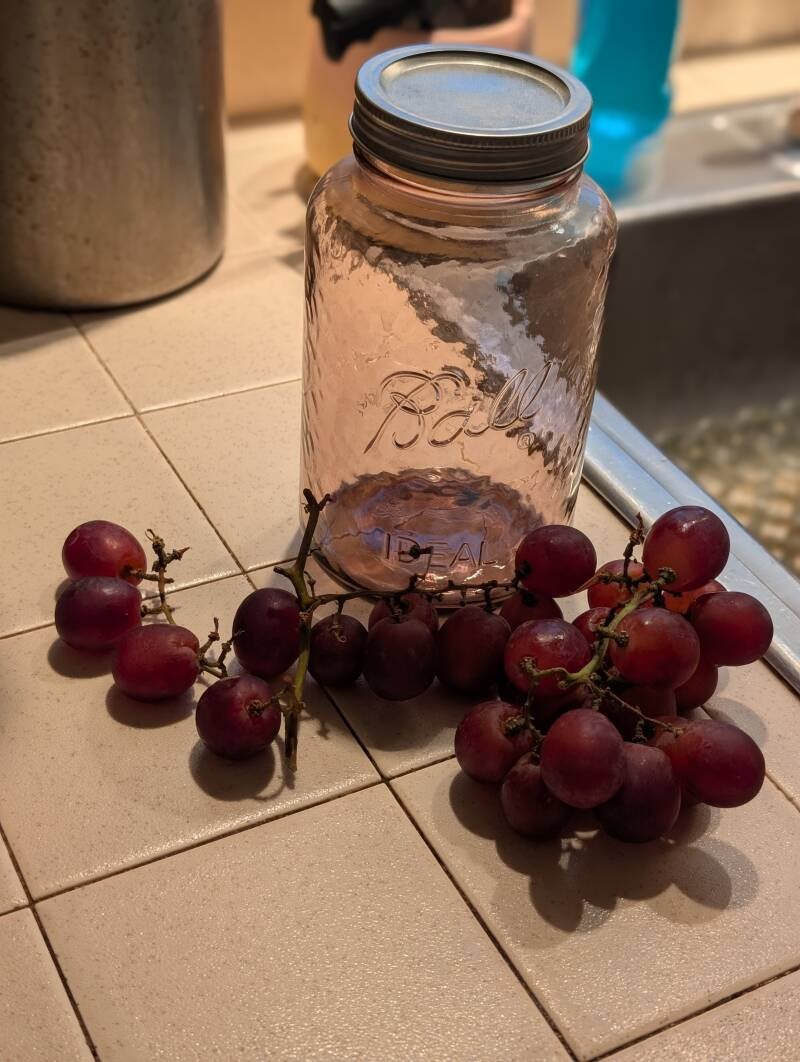 Grapes soaking in water — the start of a natural fruit yeast